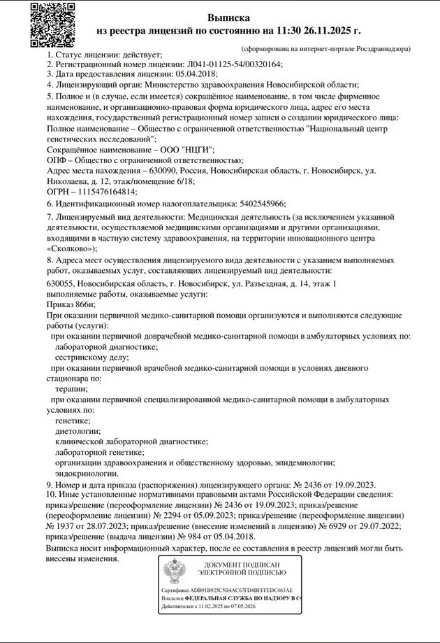 Точность ДНК-теста, который вы можете приобрести в нашем центре «ДТЛ» в Циолковском, крайне высока и достигает 99,99999%, благодаря использованию передовых методов анализа и диагностического оборудования в ДНК-лабораторий-партнёров.